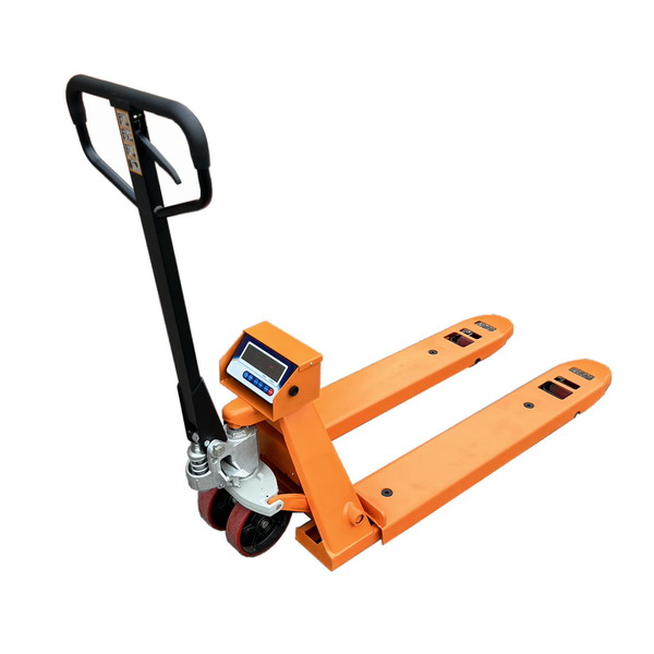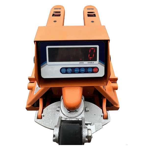 Paletový vozík s váhou PV4TYCS do 2000kg v lakovaném provedení.